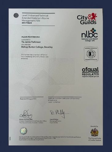 I hold a Level 3 Equine Management Diploma, along with a Bachelors of Science with Honours Degree in Equine Science, both studied at Bishop Burton College. I have also earned an Animal Therapy Graduate Certificate and currently completing my Master’s degree in Animal Manipulation at McTimoney College of Chiropractic. This combination of hands-on experience and advanced academic training allows me to approach each animal with a deep understanding of anatomy, biomechanics, and movement.
